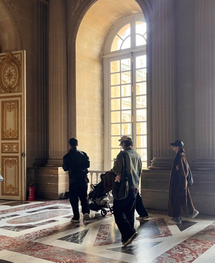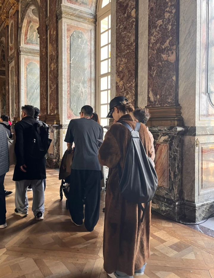 戚薇一家逛凡尔赛宫, 李承铉穿短袖她穿大衣, 小Seven头圆很可爱