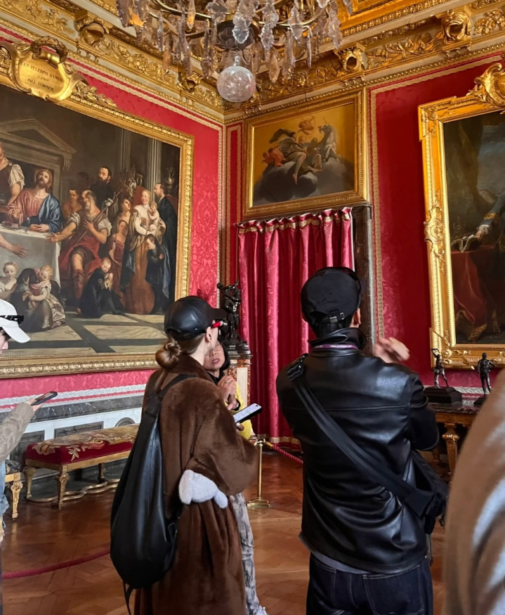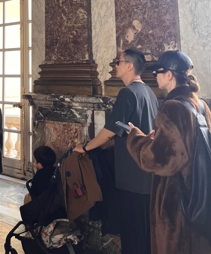 10月4日,有网友在巴黎凡尔赛宫偶遇戚薇一家,戚薇和老公李承铉带着小儿子在游玩,随行人中没有看到大女儿Lucky,想来是被留在了国内。
