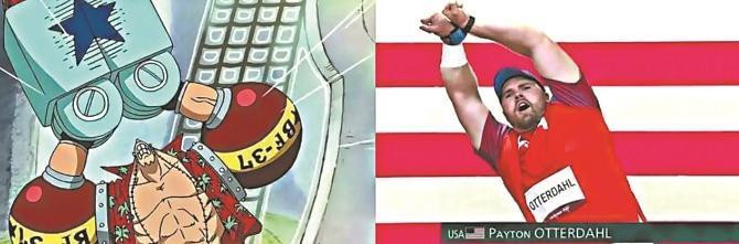 ●美国选手佩顿·奥特达则在东京奥运会铅球决赛中摆出了草帽海贼团船员的弗兰奇那经典的“Super”造型。(见下图)