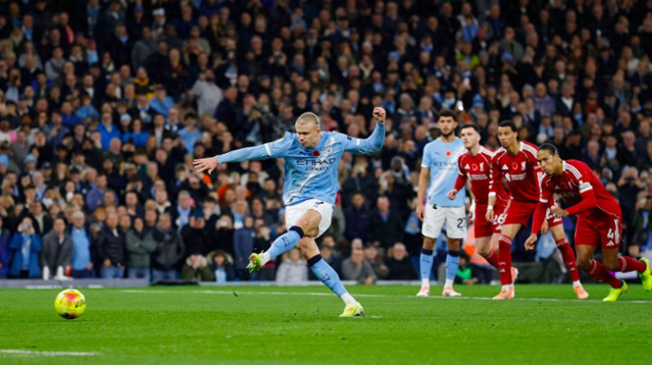 半场结束,曼城2-0暂时领先。哈兰德点球不进,范迪克进球被吹,豪门对决剧情拉满。