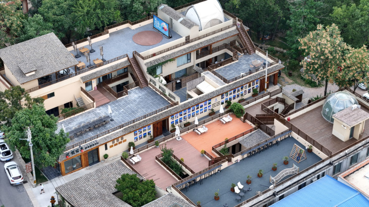 上月,抱龙村举办了“首届终南山诗歌大会”,会场在花见·乡伴的二层大露台,来往车辆把路口占满了,村子很干净,飞檐翘角之下多见民宿,或简约时尚风或禅房花木深。