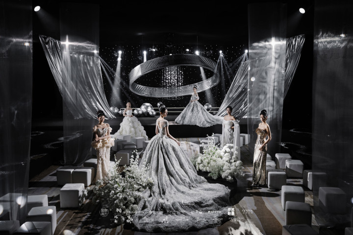 —— 新人说: “原本担心现代风会缺少温度,直到看见光线穿过水晶灯在场内撒下钻石光——原来高级的浪漫,是让自然成为婚礼最奢侈的装饰”