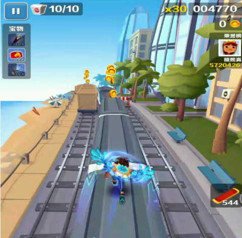 第四名《地铁跑酷》以其明快的画面和简单的操作受到了很多人的喜爱。操作只需要上下左右滑动屏幕,单局时间短,还支持随时暂停。在忙碌的生活中,抽出几分钟玩一局,能让你迅速从紧张的状态中解脱出来。