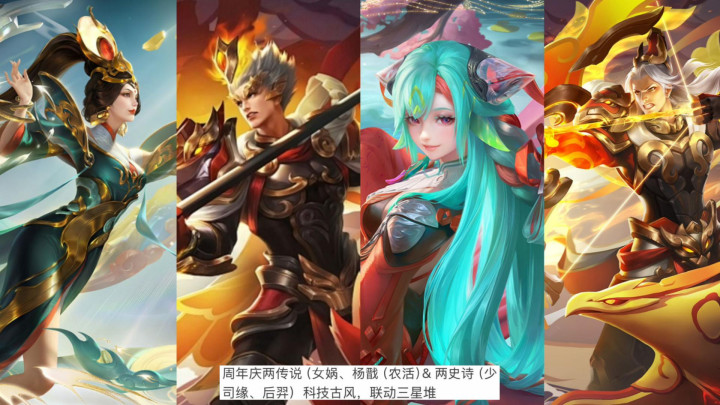 而除了杨戬和少司缘会在今年周年庆期间上新皮肤之外,女娲和后羿显然也是会得到新皮肤登场的,但他俩的周年限定玩家就没可能免费获取到了,皮肤分别是要以传说和史诗所需点券进行拥有,喜欢这四名英雄的玩家是可以开始期待他们的新皮肤了。
