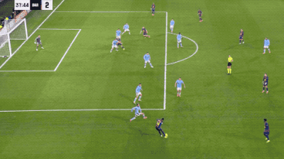 第38分钟,拉什福德45度传中,莱万多夫斯基调整脚型,将球垫进球门,莱万多夫斯基梅开二度。