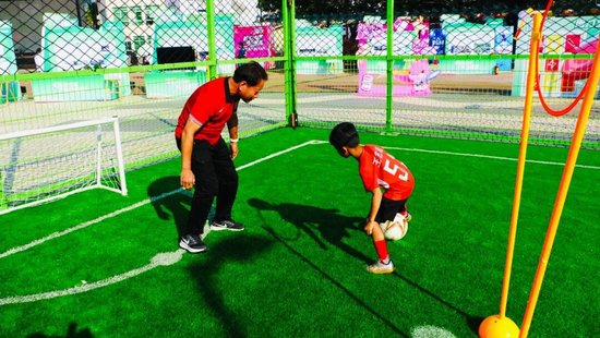 安:是的,可以说完全契合、高度匹配“科技全运,全民共享”的主题。现场我们设置了沉浸式体验区,南沙当地不少小朋友参与体验,他们对场地和项目表现出极高的热情,晚上原定8点结束的体验,孩子们一直玩到晚上9点多仍不愿离开……家长们也非常认可,一方面通过无人机足球,让孩子在运动中接触科技元素,打消了“踢球影响学习”的顾虑;另一方面,三对三足球等项目成功将孩子从电子产品前吸引到户外,实现了“脚踢足球+手操无人机”的双重锻炼,达成身心脑体全面发展的目标。此外,数据采集功能也让孩子们和教练直观看到跑动效率,从小在心中种下“科技赋能足球”的种子。
